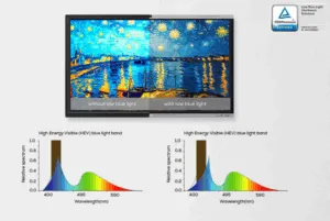 MAXHUB E7530 được thiết kế để bảo vệ mắt tối đa với công nghệ lọc ánh sáng xanh có hại (400–450nm), đạt chứng nhận TÜV Low Blue Light, giúp giảm mỏi mắt khi sử dụng lâu dài.